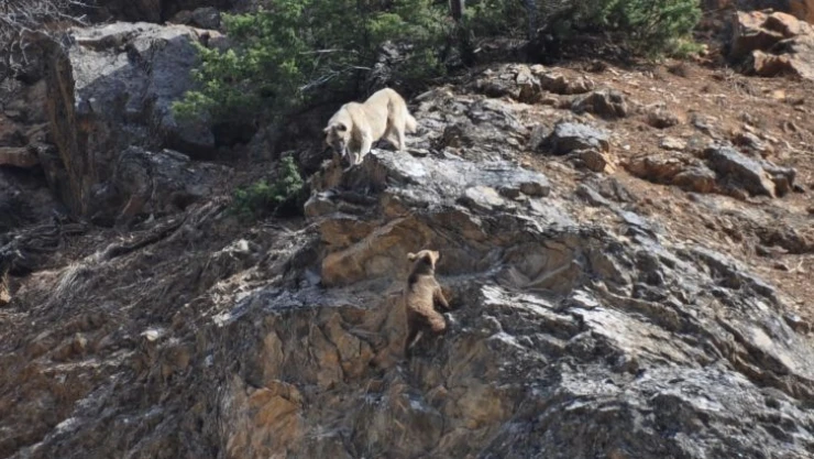 Tunceli’de geçtiğimiz günlerde birden fazla başıboş köpek Munzur Vadisi Milli Parkı’nda bir kayalık alanda yaban keçilerini sıkıştırırken görüntülenmişti. Şimdi de Pülümür Vadisi’nde yavru bir ayıyı kayalık alanda sıkıştıran köpekler, vatandaşların müdahalesiyle bölgeden uzaklaştı. Pülümür Vadisi’nde annesini kaybeden yavru boz ayı köpeklerin saldırısından kurtulmak için kayalık bir alana sığındığı o anlar ise Doğa Fotoğrafçısı İsmail Yoleri tarafından fotoğraflandı.