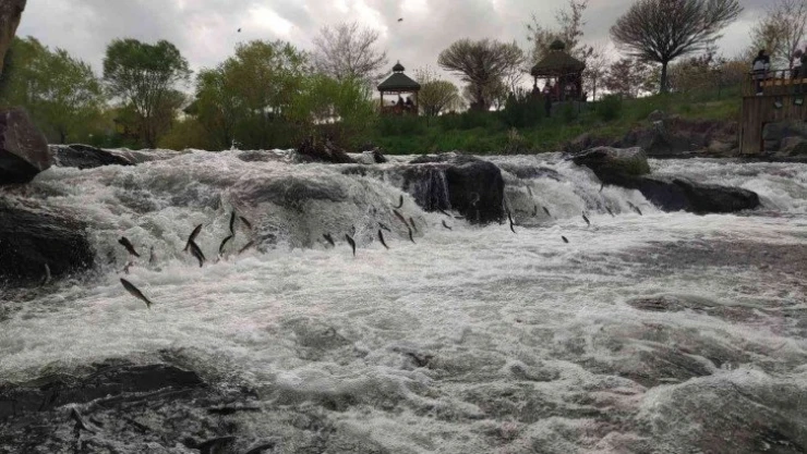 Van Gölü’nün tuzlu ve sodalı suyundan çıkarak yumurtalarını bırakmak için akarsulara akın eden balıklar, aynı zamanda ziyaretçilerine de görsel şölen sunuyor. Van Gölü’nde yaşayan inci kefali balığı, 15 Nisan ile 15 Temmuz tarihleri arasında Van Gölü’nün sodalı ve tuzlu suyundan uzaklaşarak tatlı sulara doğru göç ediyor. Her yıl aynı tarihlerde milyonlarca balığın bu zorlu göçünün yoğun olarak görüldüğü Van’ın Erciş ilçesindeki Deli Çay’da suyun akış yönünün tersine yüzen ve engelleri uçarak aşmaya çalışan balıklar izleyenleri büyülüyor.