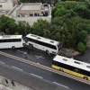 Zincirleme kazaya karışan otobüsler dron ile görüntülendi.