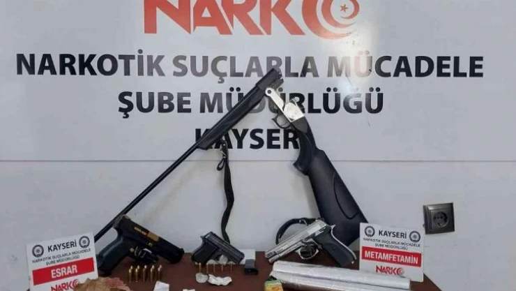 Kayseri İl Emniyet Müdürlüğü Narkotik Suçlarla Mücadele Şube Müdürlüğü ekipleri tarafından uyuşturucu madde kullanan ve uyuşturucu madde ticareti yapan şahısları yönelik il genelinde operasyon düzenledi. 11 adrese düzenlenen eş zamanlı operasyona 33 ekip halinde toplam 115 polis katıldı. Adreslere yapılan operasyonlarda 7 parça halinde farklı miktarlarda uyuşturucu madde, 3 adet ruhsatsız tabanca, 1 adet ruhsatsız tüfek, 15 adet fişek ve 1 adet de uyuşturucu paketlemek için kullanılan folyo ele geçirildi.