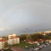 Tatvan’da güneşli başlayan hava, akşam saatlerine doğru yerini sağanak yağışa bıraktı. Aniden bastıran ve kısa bir süre etkili olan sağanak yağış sonrasında Van Gölü’nün Tatvan sahilinde gökkuşağı oluştu. Van Gölü üzerindeki gökkuşağı, renk cümbüşü oluşturdu.