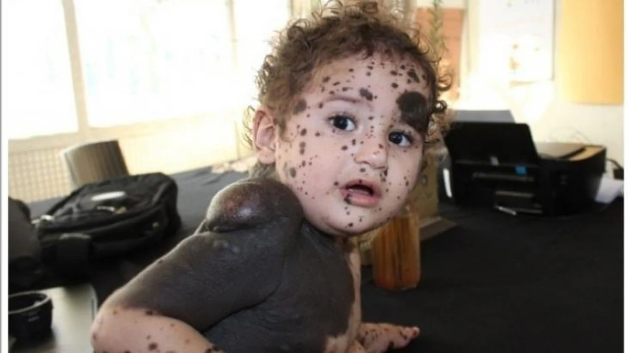 Vücudunda leke ve kitle ile doğan bebek tedavi ediliyor
