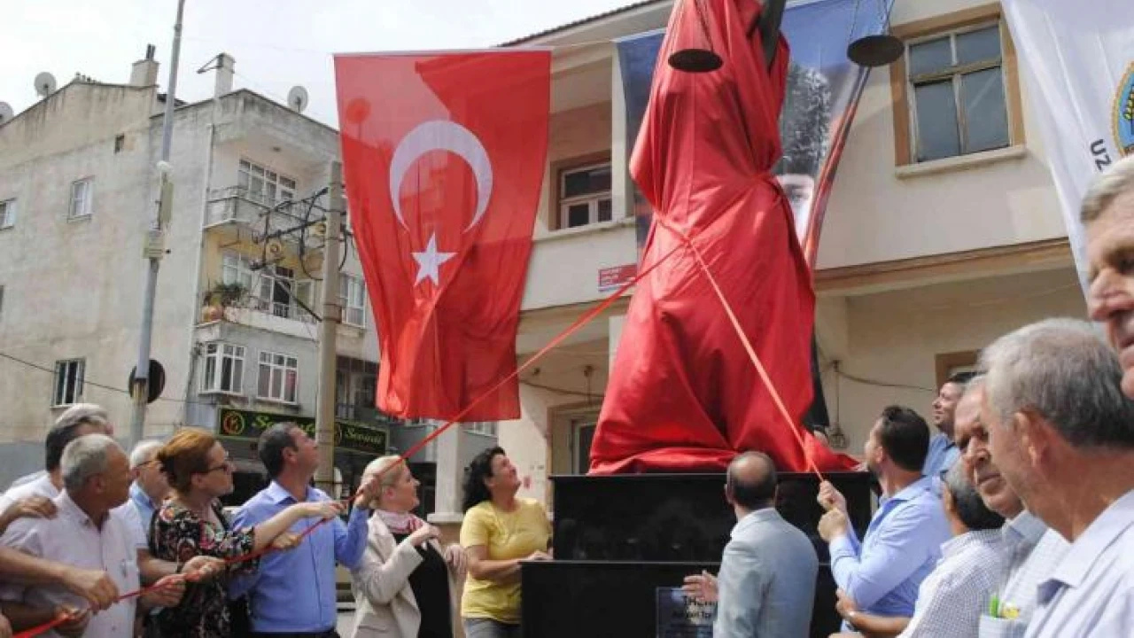 Yakılan Adalet heykelinin yenisi yaptırılarak törenle açıldı