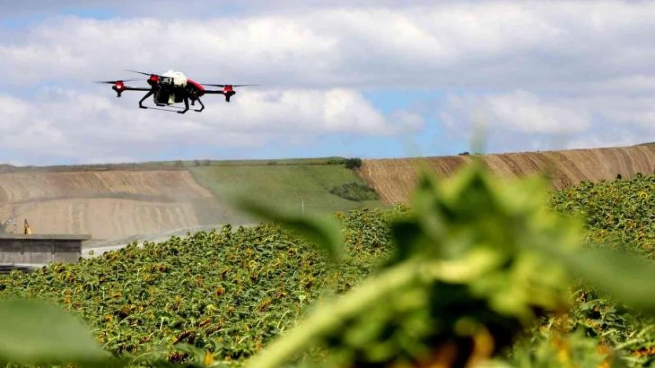 Yalova'da ayçiçeği tarlalarında ürünlere zarar veren çayır tırtılı ile dron ile ilaçlama yapılarak mücadele veriliyor.