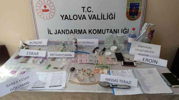 Yalova'nın Çiftlikköy ilçesinde düzenlenen operasyonda 3 kişi gözaltına alınırken, çeşitli tür ve miktarlarda uyuşturucu madde ele geçirildi.