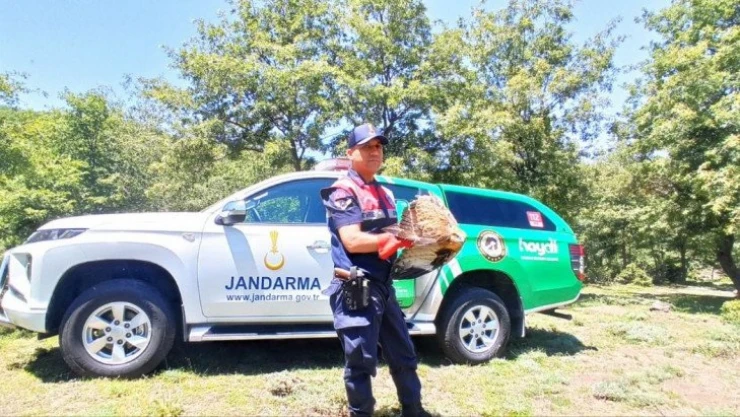 Aksaray'da Hasan Dağı'nın ormanlık bölgesinde devriye atarken ağacın dallarında yaralı şahin bulan jandarma ekipleri, ağaçtan kurtardığı şahini Doğa Koruma ve Milli Parklar Müdürlüğüne teslim etti.