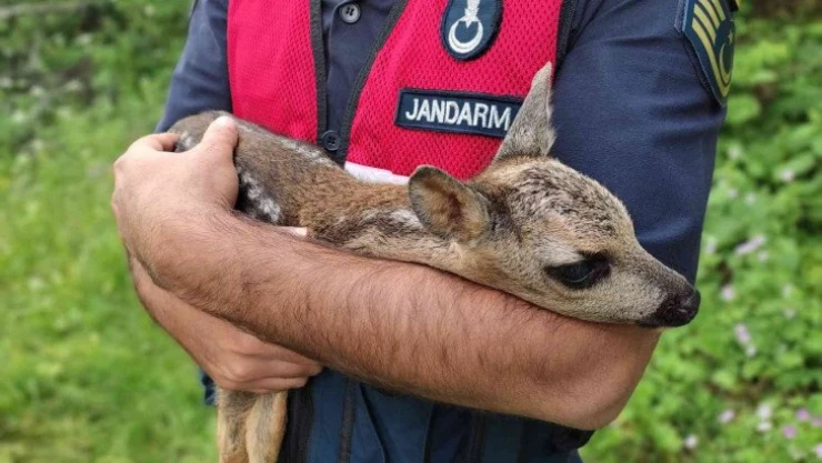Tokat'ta annesini kaybeden yavru karacaya jandarma ekipleri sahip çıktı.
