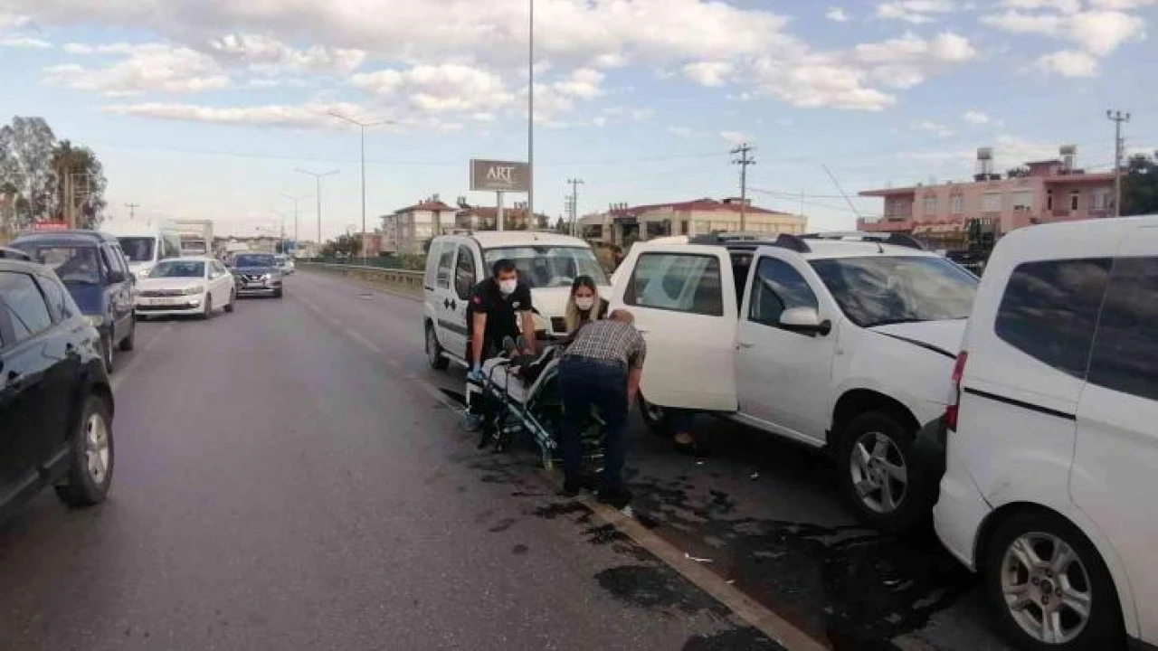 Antalya'nın Manavgat ilçesi D-400 Karayolu Hatipler Yenimahalle'de yaya geçidindeki yayaya yol vermek için duran araçlar zincirleme kazaya neden oldu. Kazada, 2 kişi yaralandı.