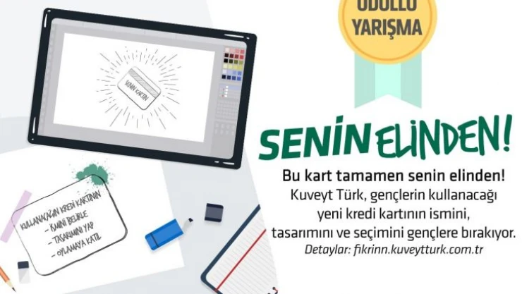 Yapılan açıklamaya göre, bankanın belirli aralıklarla tematik çağrılarda bulunarak farklı fikirleri değerlendirdiği Fikrinn Platformu üzerinden “Senin elinden..” mottosuyla duyurulan kart tasarım yarışmasına tüm üniversite öğrencileri başvurabiliyor. Yarışmaya, elle çizim yapılan görseller dahil farklı formatlarda hazırlanan tasarımlarla katılım sağlanabiliyor. Yarışmanın sonraki aşamalarında tasarım ve isim seçimi de yine gençlerin oylamalarıyla yapılacak. Böylece gençler, banka ile katılım finans sektöründe bir ilki gerçekleştirerek, Türkiye’de kendi kredi kartlarını, ismi de dahil olacak şekilde tamamen kendileri tasarlamış olacak. Yarışmada ilk 3’e giren tasarımların her birine 5 bin TL ödül takdim edilecek. Kuveyt Türk, gençlere yönelik yeni kredi kartını sürdürülebilirlik uygulamaları kapsamında geri dönüştürülmüş malzemeden üreterek hizmete sunacak.