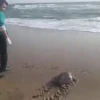 Balıkesir’in Ayvalık ilçesinde sahilde bulunan yeşil deniz kaplumbağası (Cheonia Mydas) tedavisi sonrasında doğal yaşam alanına salıverildi.