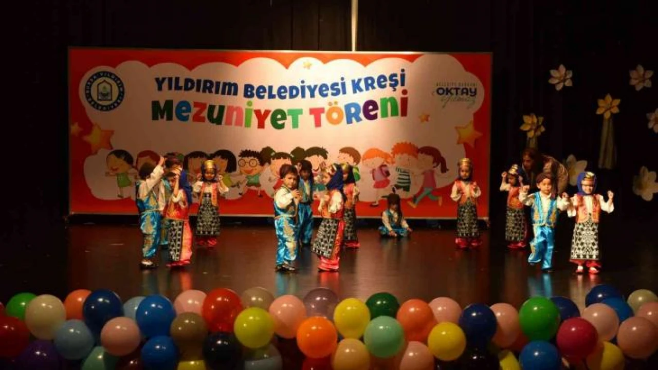 Yıldırım Belediyesi Kreşi'nde mezuniyet heyecanı yaşandı. Yıldırım Belediyesi bünyesinde faaliyet gösteren kreşte eğitim gören 19 çocuk bu yıl mezun oldu.