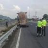 Düzce’de, D-100 karayolu Bolu Dağı mevkiinde yokuş aşağı inen tankerin freni patladı. Polis ekiplerinin önlem aldığı yolda sürücü, tankeri bariyerlere sürterek durdurdu.