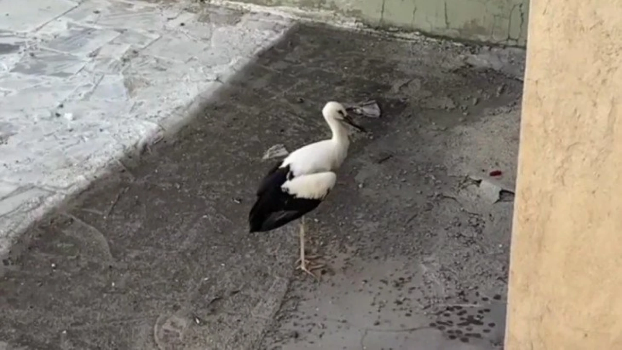 Elazığ'da yuvasından cami bahçesine düşen yaralı leylek, tedavi altına alındı.