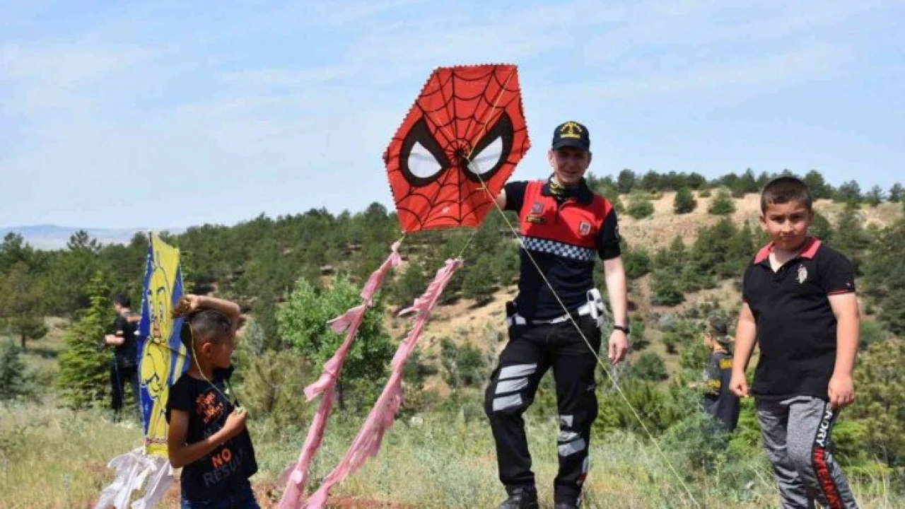 Kırıkkale'de ormanlık alanda düzenlenen etkinlikte, çocukların uçurtma şenliği renkli görüntülere sahne oldu. Uçurtmalarını uçuramayan bazı çocuklara da jandarma yardımcı oldu.